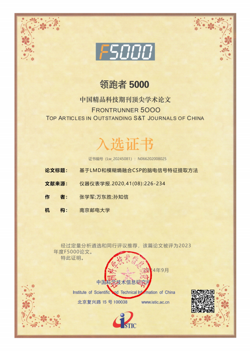 我院教授論文榮獲 “領跑者5000——中國精品科技期刊頂尖學術論文”